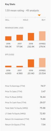 The Street consensus is $68.8 billion in revenue, with profits of $4.60 a share for the fiscal Quarter ending September 2019.