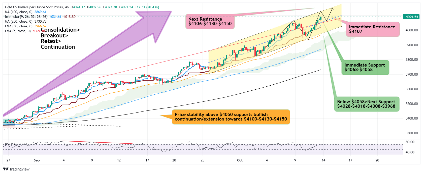 In tune with the primary bullish trend and macro factors supporting bets for Gold rush to $4200-$4400 Gold successfully reclaimed $4000 as immediate support base and launchpad for next bullish wave.