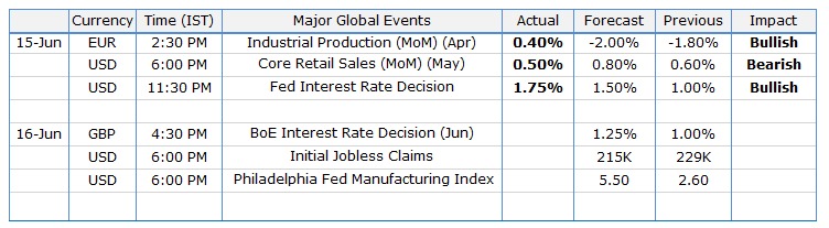 US Fed hiked rates by 75bps to 1.50-1.75%, in line with expectations. Dot plot indicated that Fed members saw the Federal funds rate at 3.4% by end of 2022 and ,3.8% by end of 2023. This was lower than market expectations by 20-25bps. Also Fed chair Powell in his speech said that 75bps hikes were not the norm and that the pace of tightening would depend on the course of inflation. However the policy statement did say that the Fed was committed to bringing inflation back to 2%. It seemed the Fed did not want to rattle the markets and price in a preset course of tightening. As we had highlighted, the bar for the Fed to sound more hawkish than what the market was already expecting was extremely high.
