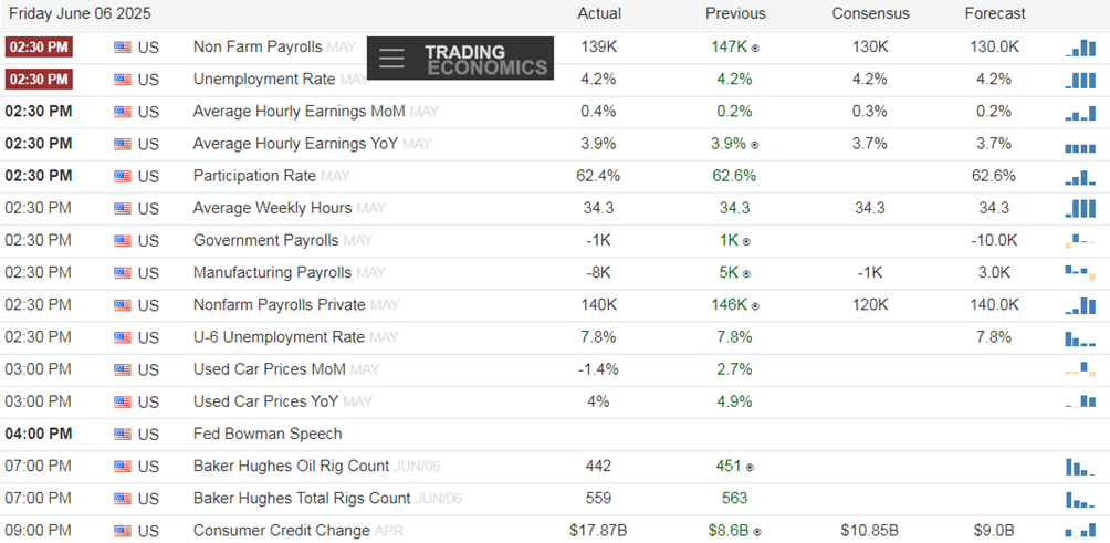 |S&P 500 rose following NFPs beat, but alongside Nasdaq sold off into the close – unlike Russell 2000. Markets chose to ignore weakening macro elements from prior months‘ downside revisions (95K for two months is a lot), decreasing participation rate or wobbly used car prices. The consumer is simply more pinched (economy bifurcated), and part-time jobs gained confirm that assessment too.