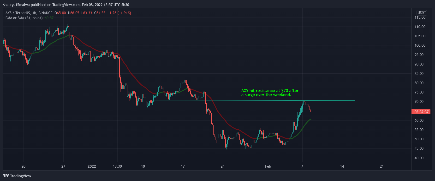 AXS hit resistance after a surge over the weekend. (TradingView)