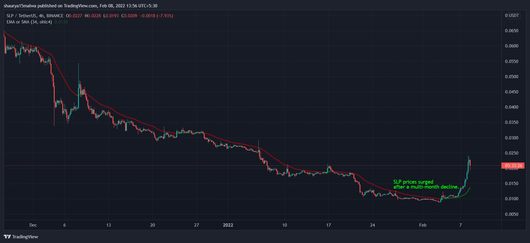 SLP prices have surged 100% in the past week following the update, data from analytics tool CoinGecko showed.