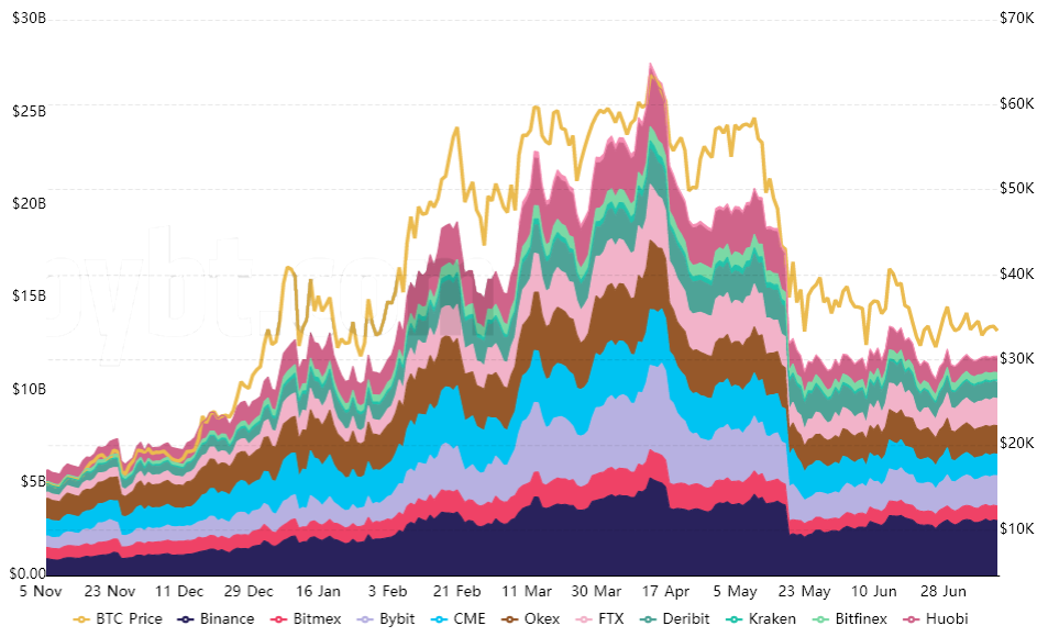 Bitcoin futures (quarterly and perpetual) aggregate open interest. Source: Bybt