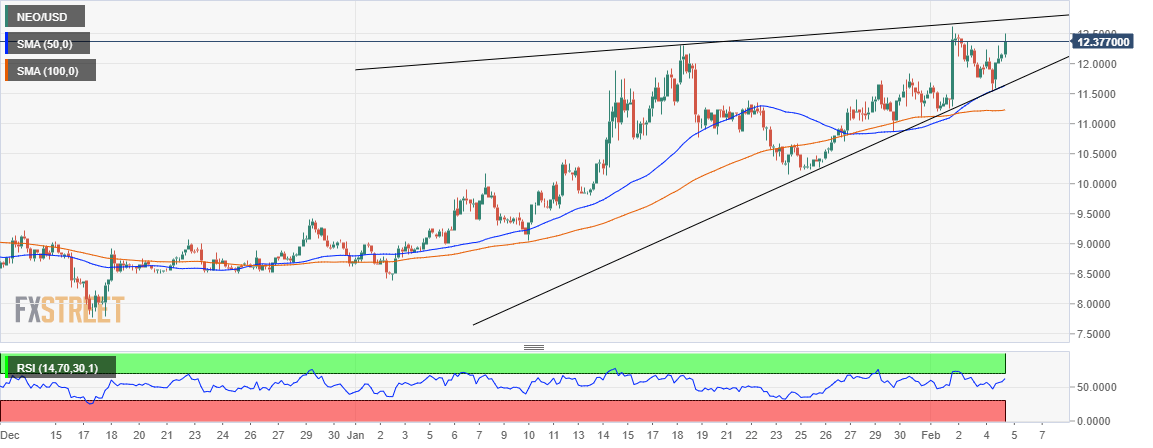 NEO is bulls seem to be unbothered by the bear pressure going around the market. It is has corrected upwards almost 2% on the day. Moreover, the bulls are not afraid to poke on the bears in their fight for a break above the resistance at $12.50.