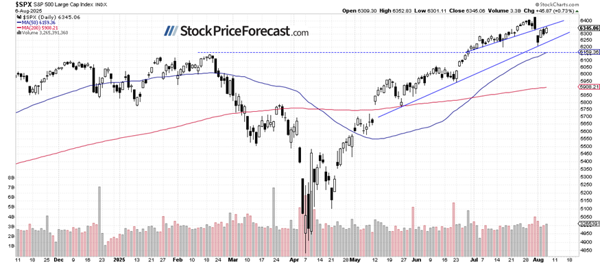 The S&P 500 Index closed 0.73% higher on Wednesday, extending its rebound after last week’s Thursday–Friday sell-off. While it remains uncertain whether the market will fully retrace that decline, expectations are very positive today following overnight news about Apple investments, tariff exemptions for semiconductors, and other factors. The S&P 500 is likely to open 0.6% higher, nearing the 6,400 level.