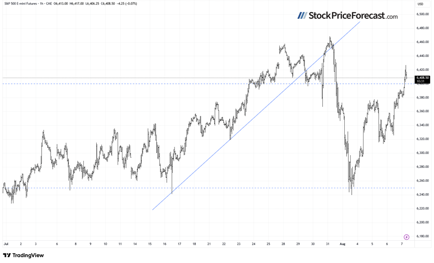 This morning, the S&P 500 futures contract is trading higher, though pulling back slightly from a local high of around 6,427.