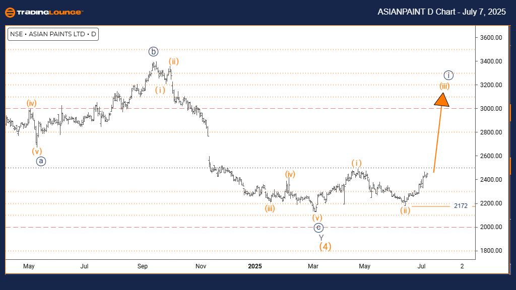 The current technical configuration points to ASIAN PAINT being positioned for potentially extended gains, with Orange Wave 3 in motion following the completion of Orange Wave 2. The impulsive nature of this phase supports strong buying interest and hints at significant upside potential in upcoming sessions.