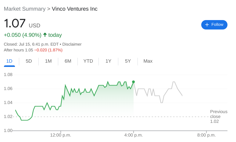 NASDAQ:BBIG snapped its recent losing streak as investors took time to digest the latest shuffle that the company announced for its executive suite. On Friday, shares of BBIG rose by 4.90% and closed the trading week at $1.07. Investors shrugged off a rocky start to earnings season and a record CPI report from June as all three major indices soared higher into the weekend. Overall, the Dow Jones added 658 basis points, the S&P 500 gained 1.92%, and the NASDAQ posted a 1.79% rise during the session.