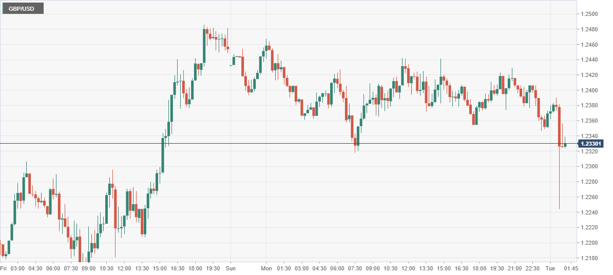 |GBP/USD flash crash, drops from 1.2379-1.2242.