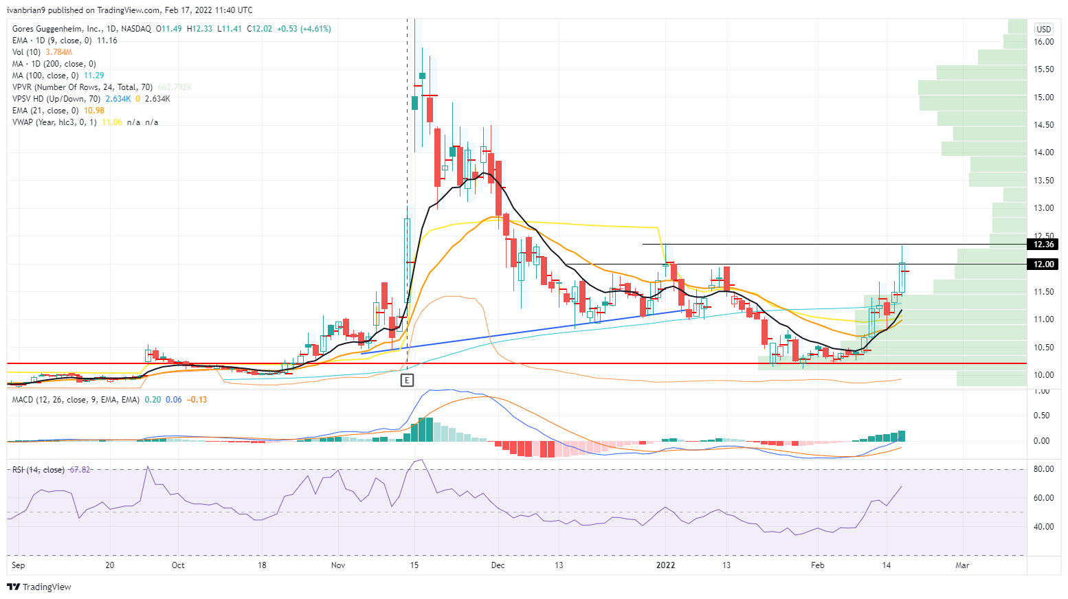 This will be tough to break given that high risk stocks are likely to suffer as we close out the week. Geopolitical events are dominating and high growth names are still not favored. SPACs generally hold $10 cash until the deal goes through, so this is obvious support. The best strategy with SPAC trading is to try and buy as close to $10 as possible.