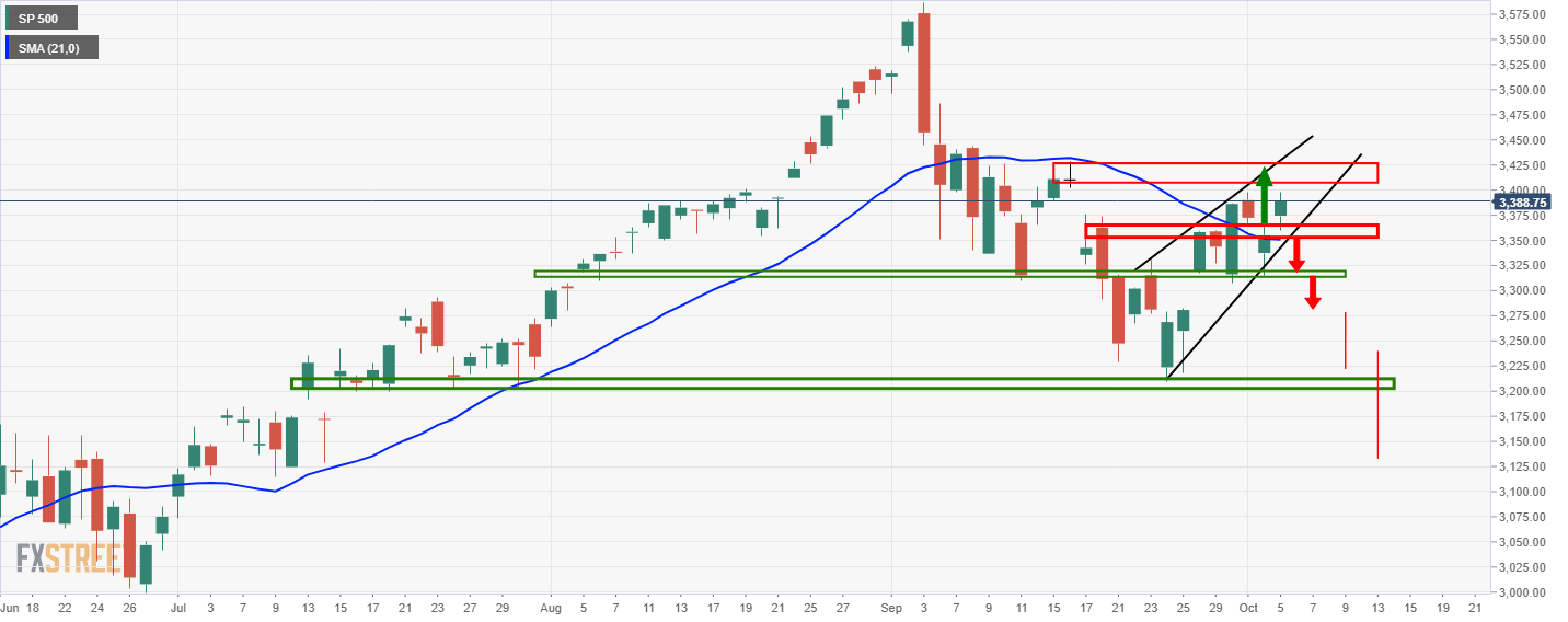 The S&P 500, meeting the session high on the news, is otherwise residing in a bearish wedge formation: