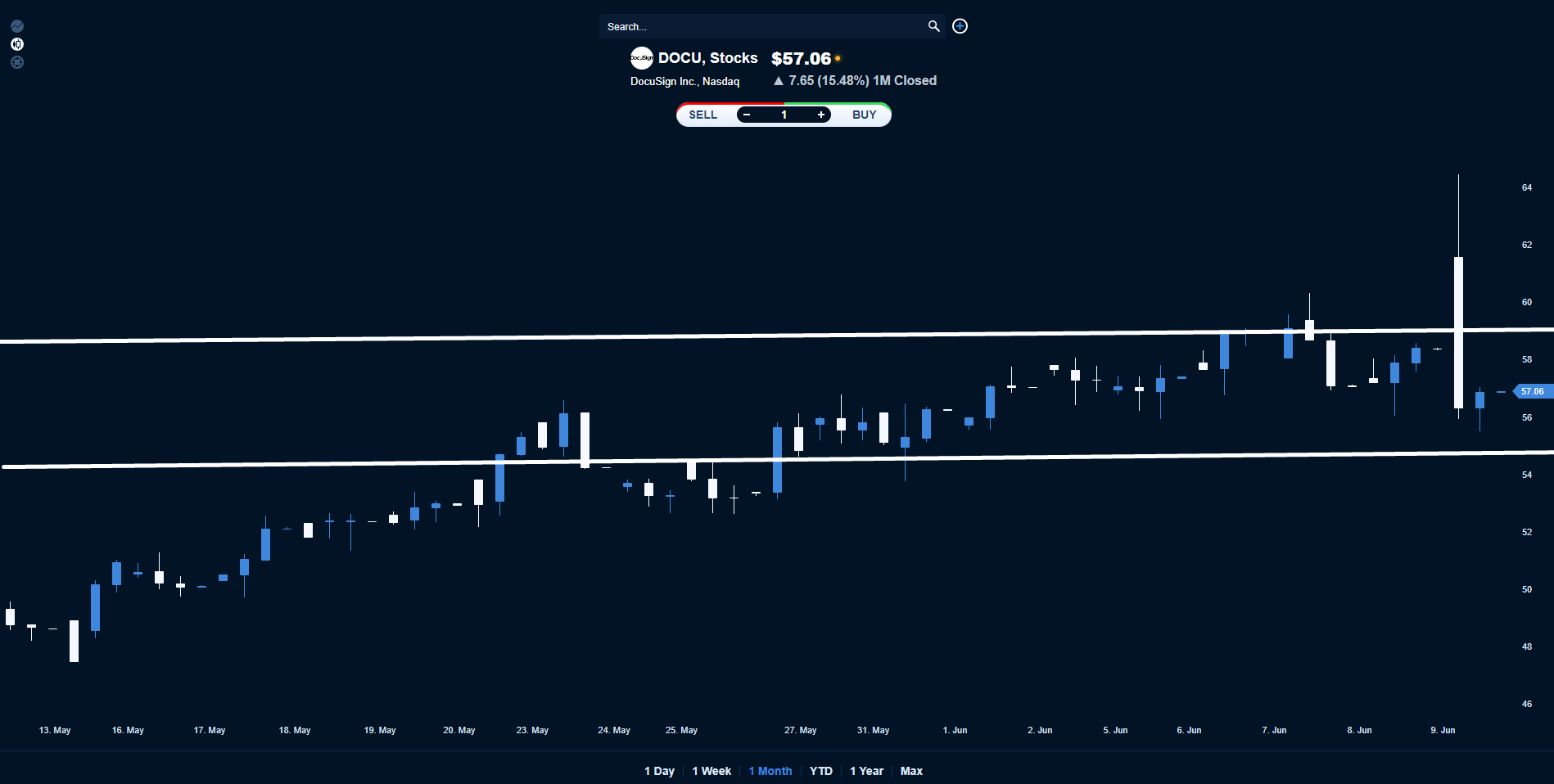 |Today’s instrument is the DocuSign Inc.‘s stock traded in Nasdaq exchange under the ticker DOCU.