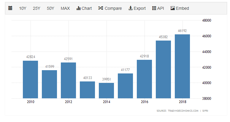 German military spending has bottomed out in 2014 and is on the rise. That can be attributed to both Obama and Trump's nudging of Europe's largest economy – or perhaps of Berlin's fear that it cannot trust America. Chancellor Angela Merkel cast doubts about being able to rely on Washington.