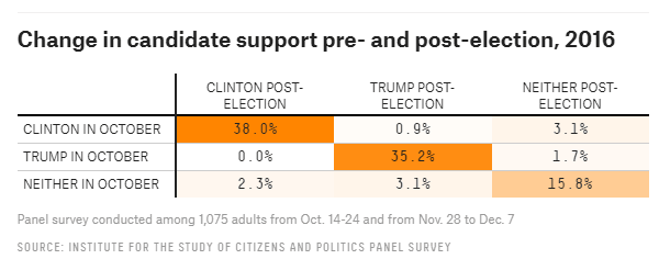 Some Clinton supporters switched to trump while the opposite move did not materialize. The current president won over most undecideds: