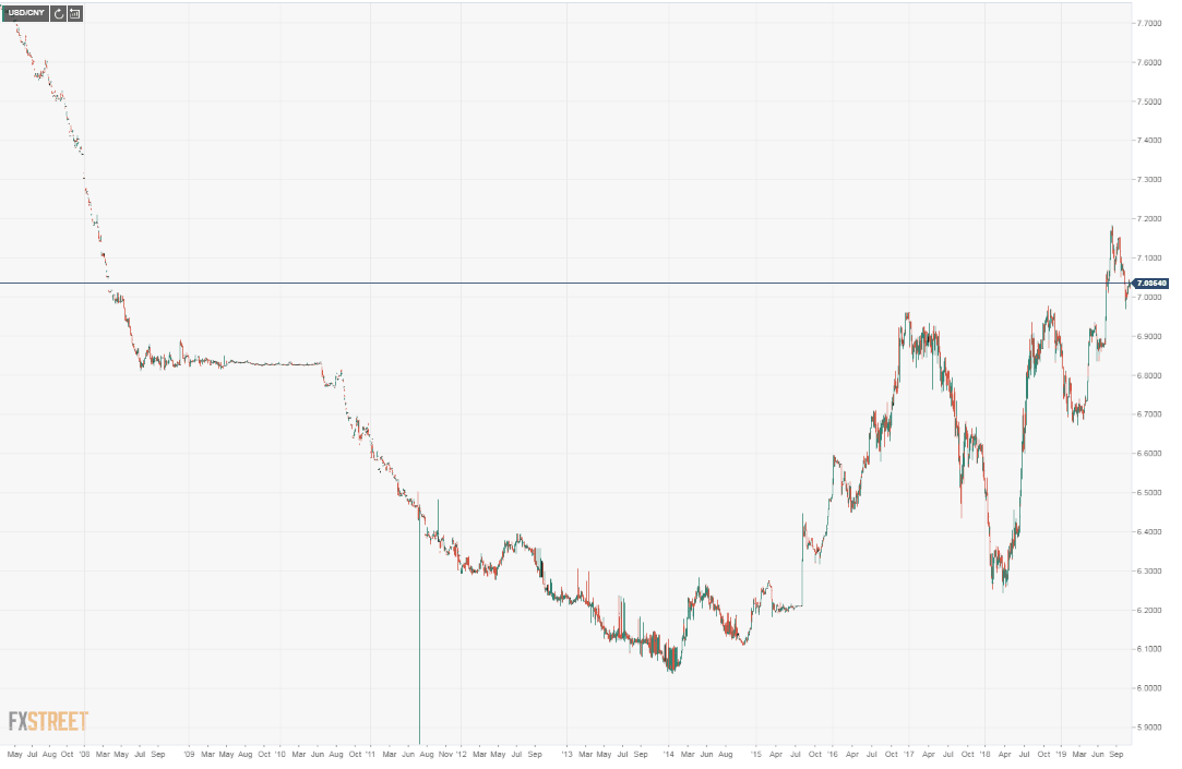 I would have to say very. The yuan began to fall against the dollar in mid-2018 after the tariff impositions began in earnest and it went to its ten year low in six months. It recovered as talks progressed only to fall sharply with the late-summer disagreement. October’s preliminary agreement brought the USD/CNY down again but notably it has remained above 7.0 to the dollar.