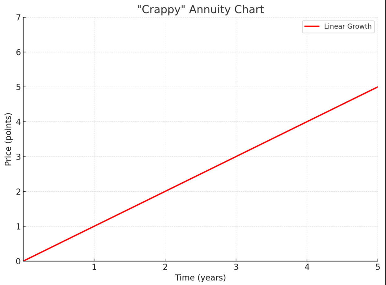 I could write an entire article on this topic, alone, but let’s just keep thing simple and say that, these days, there are fixed, indexed annuities out there that have 5.5% rates (or better, depending on the options and “buckets” chosen), and while these things aren’t going to shoot he lights out, I want to drive home two points: