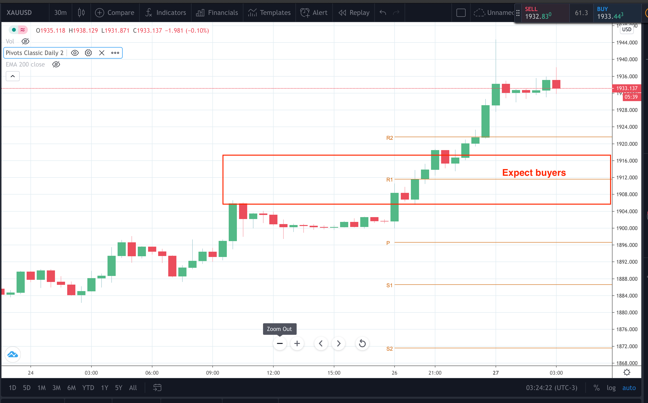 $1900 looks like an area where we can expect pullback buyers in gold and $23 an area to expect pullback buyers in silver.