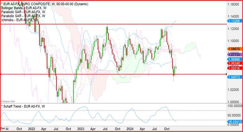 Tidbit: When in doubt, change the timeframe of the chart. Alas, the weekly euro/dollar chart does not deliver any wonderful insights. The red lines mark the recent highs and lows. In September, the euro failed to match the previous high from July, which triggered the decline. Then in the week of Oct 2 we got a low that did surpass the previous low on Nov 18. That led, of course, to the expected bounce, but now what? We cannot expect an endless ping-pong between high and low. We need a breakout and to get a breakout, we need an Event.