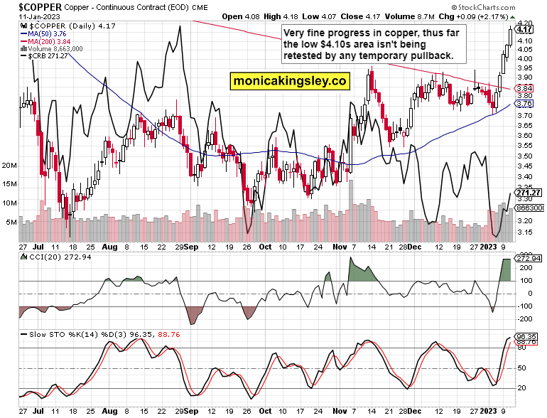 Copper remains a bright spot, but I‘m still looking for a quick consolidation in the days ahead. Silver and base metals are the best picks, flying out of warehouses no matter the approaching recession.