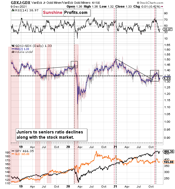 Furthermore, a drop below 1 in the ratio isn’t beyond the realms of possibility. In fact, it’s actually quite likely – that’s what happened in 2020 as well, and that’s why I’m shorting the GDXJ ETF.