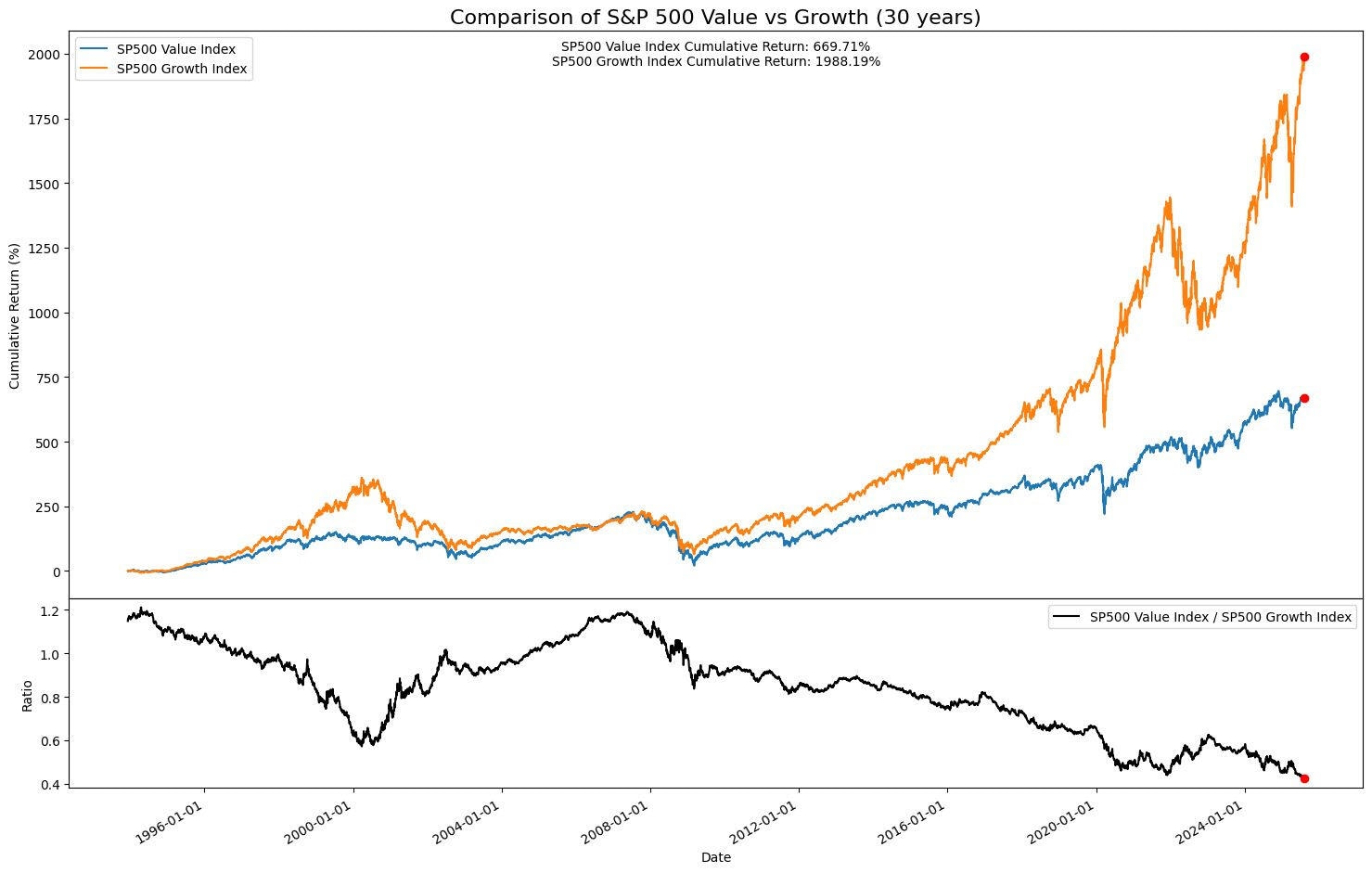 Growth vs Value just hit an all-time new high. Or, as my chart has it, value vs. growth hit an all-time new low.