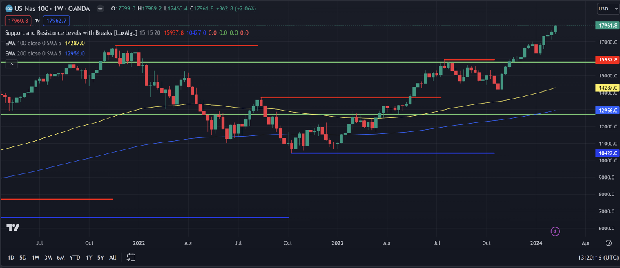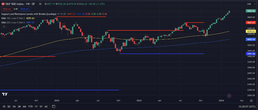 The remarkable performance of the NASDAQ 100 and S&P 500 Indices underscores the resilience of US equities amidst a backdrop of rising interest rates and inflation concerns. The influx of foreign capital underscores the perceived strength of the US market, further supported by robust corporate earnings and optimistic economic forecasts. However, investors remain wary of potential headwinds, including geopolitical tensions and policy uncertainties.