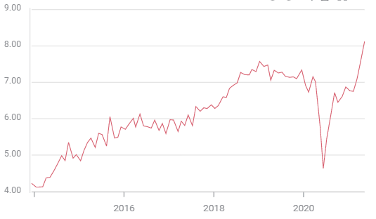 It has been apparent since last year that when the annual inflation reports came around to the March and April figures they would show large increases due to the 2020 collapse in prices.