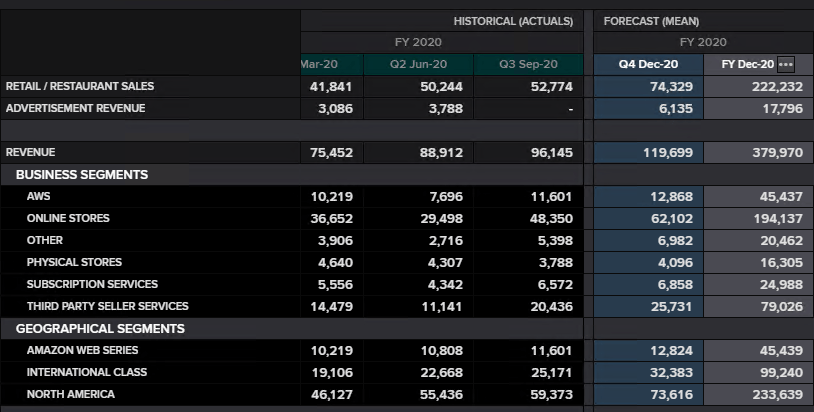 Amazon’s revenue stream is also impressive, including from the Amazon Web Service, as the biggest part of Amazon’s income is derived from its cloud segment. Amazon Web Services (AWS) has posted a significant growth in both sales and operating income since its launch, but has skyrocketed in 2020 more precisely due to the pandemic-induced growth of the work-from-home economy. Further, Prime-based customer benefits are likely to have remained positives while its Prime Day event experience record sales between Oct 13 and Oct 14.