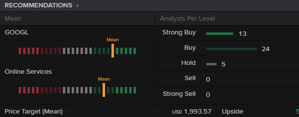 Alphabets share price appears to have spiked to the $1,934.50 high in January. It is currently traded nearly doubled from the $1,013 low seen in March 2020.