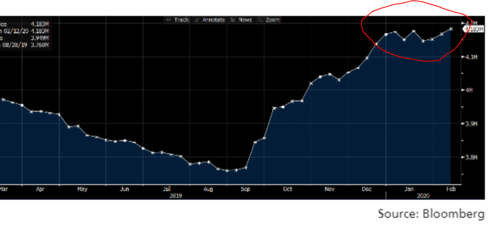 Also, the convexity of global economic data to how much of the China economy comes back online should not be underestimated, especially with a reported 500 million Chinese impacted by the quarantine.