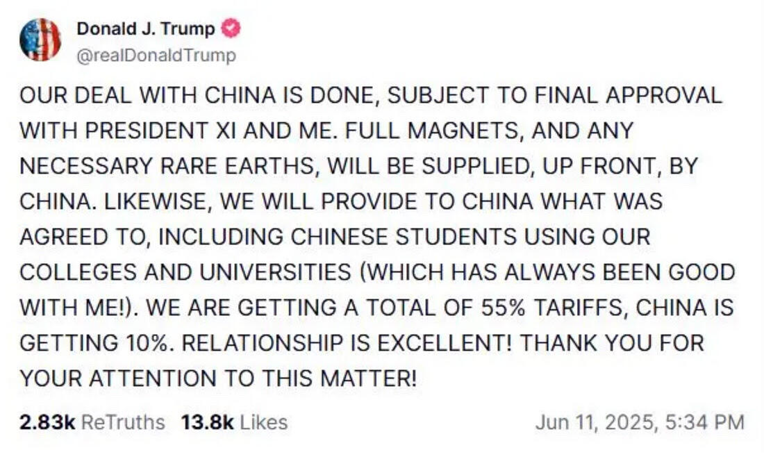 Asia wakes to another sunrise that feels both promising and familiar — a blend of optimism and that faint ache of déjà vu. Once again, the U.S. and China seem to have reached “framework harmony,” a phrase traders now treat like an old song they know too well. You hum along because you’ve heard it before, even if you don’t quite believe the ending. A Trump–Xi trade truce might be taking shape, but in trading rooms from Sydney to Singapore, it feels more like cautious déjà vu than a new dawn today — as traders remain cautious about a replay of June 11, the day the “ done deal” with China wasn’t quite done.