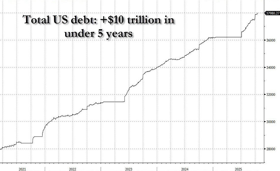 But don’t mistake this as the end of the “debasement trade.” The macro script hasn’t changed—Washington’s debt pile has ballooned by ten trillion dollars in under five years. That kind of arithmetic doesn’t unwind with one bad night in the pits. If anything, gold’s purge was a violent repricing of leverage, not faith. The paper market cracked; the belief system remains.