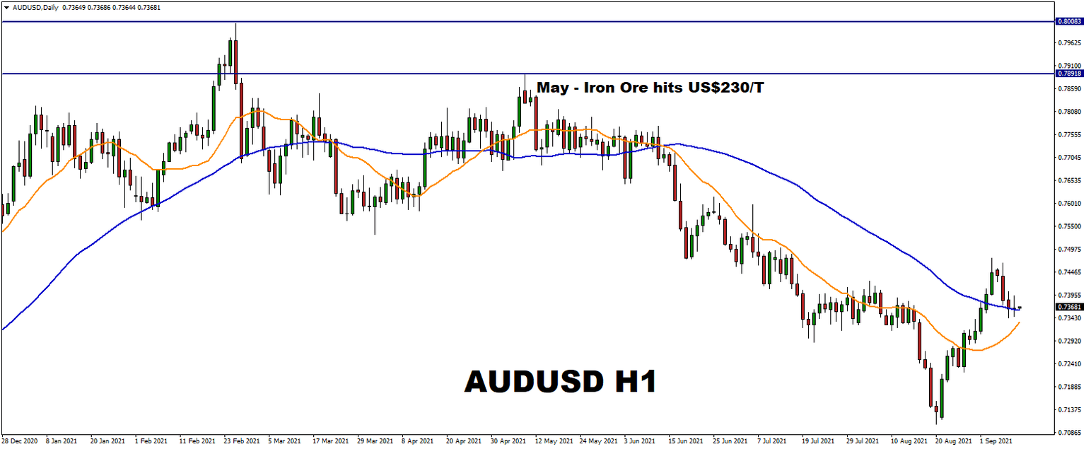 However, the high prices Iron Ore fetched in May have since evaporated, and with it, the AUD has fallen from its lofty perch. Currently, Iron Ore is priced at US $132.5 per tonne, a 2021 low representing a 40% decrease from its 2021 high. The price drop has been sharper than its rise, as China's stockpile of Iron Ore kept rising and demand from Chinese manufacturers declined.
