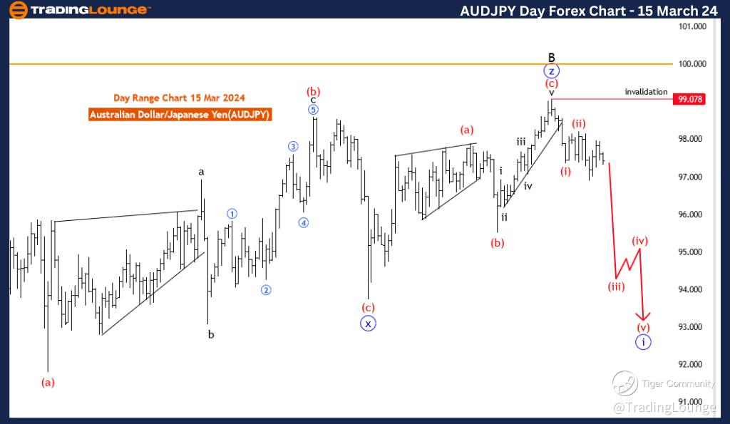 The AUD/JPY Elliott Wave Analysis for the day chart on 15 March 24, offers insights into potential price movements in the Australian Dollar/Japanese Yen currency pair, applying Elliott Wave principles within the framework of technical analysis.
