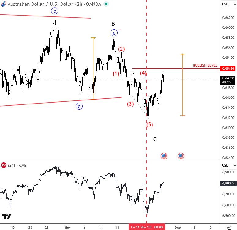 Aussie is recovering very nicely after inflation in Australia came out hotter than expected, meaning there are now fewer chances for potential rate cuts, so any signals from the Australian central bank that they will stay on hold will make AUD much more attractive, especially now when rate-cut expectations for December in the US are increasing. So apparently Aussie could see more strength in line with the S&P 500, and as long as risk-on is here I would not be surprised to see more upside that could confirm the bullish intraday trend once the price passes the 0.6518 resistance.