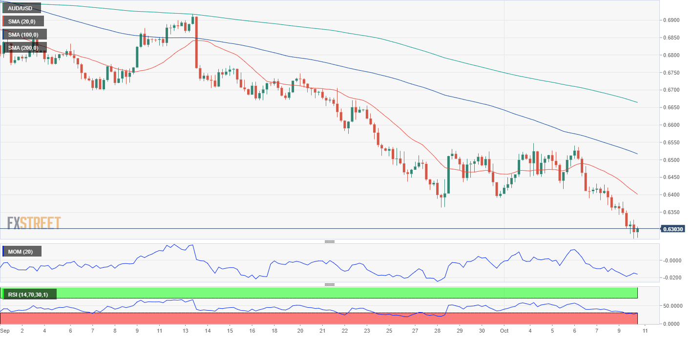 The AUD/USD pair heads into the Asian opening trading around the 0.6300 figure, as the greenback lost steam mid-US-afternoon. The daily chart shows that chances are of another leg south as technical indicators keep heading south near oversold readings. Furthermore, the pair is far below all of its moving averages, with the 20 SMA accelerating its slide above the current level, currently at around 0.6550.