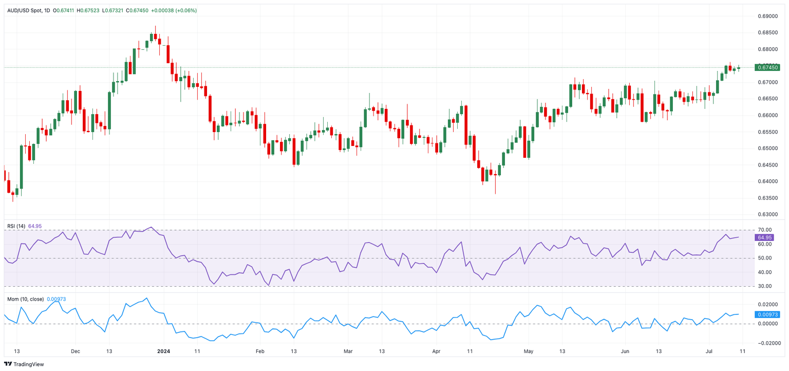 If bulls push further and AUD/USD clears the July high of 0.6761 (July 8), it might challenge the December 2023 top of 0.6871, followed by the July 2023 peak of 0.6894 (July 14), all ahead of the critical 0.7000 barrier.