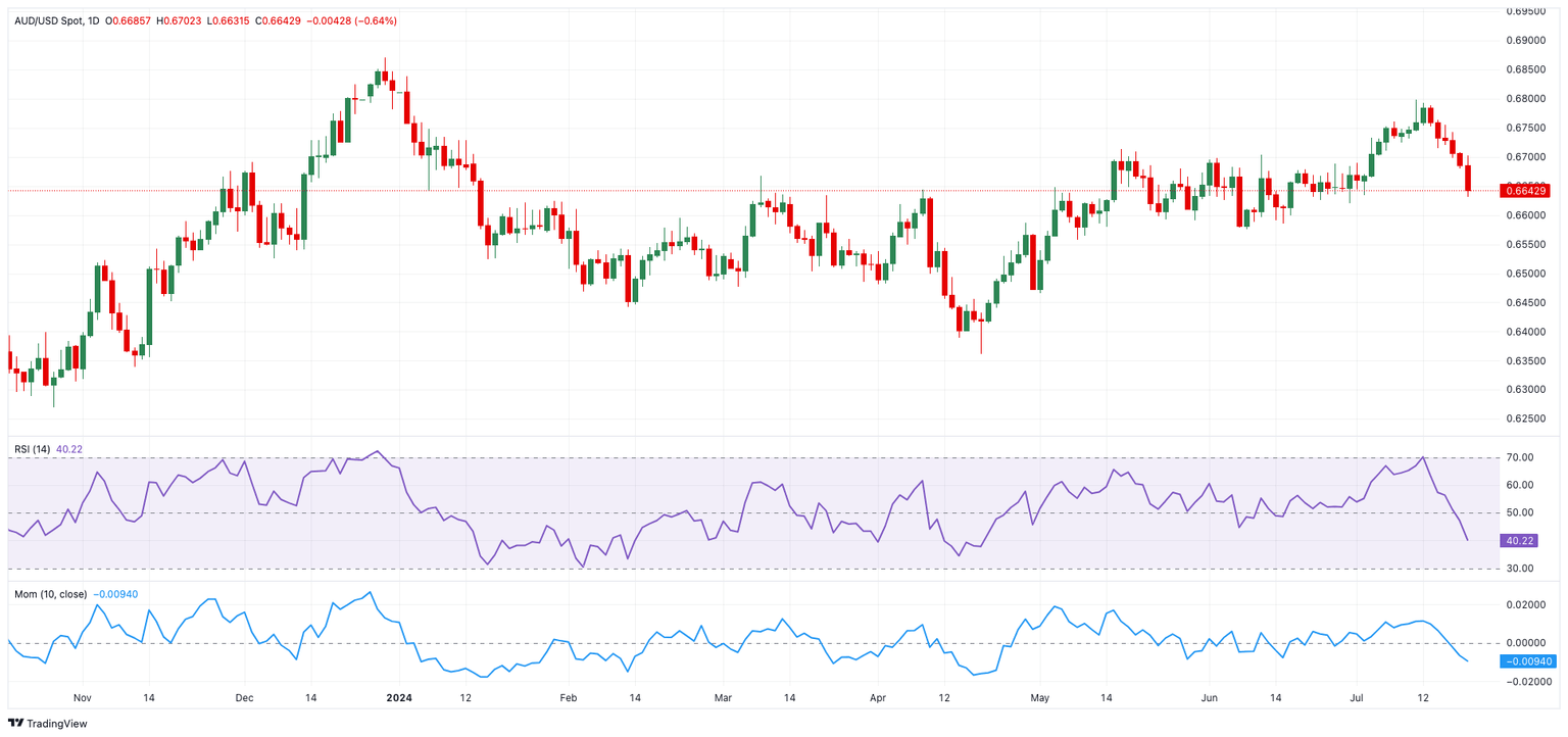 Further losses in AUD/USD should find initial support at the July low of 0.6631 ahead of the 100-day SMA at 0.6605. If the pair breaks through this level, it might go for the June low of 0.6574 (June 10), which is supported by the key 200-day SMA (0.6581). From here, the May low of 0.6465 is followed by the 2024 bottom of 0.6362 (April 19).