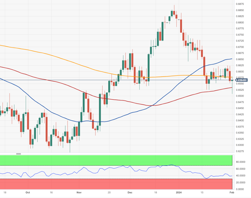 - AUD/USD dropped to a new three-month low near 0.6500.