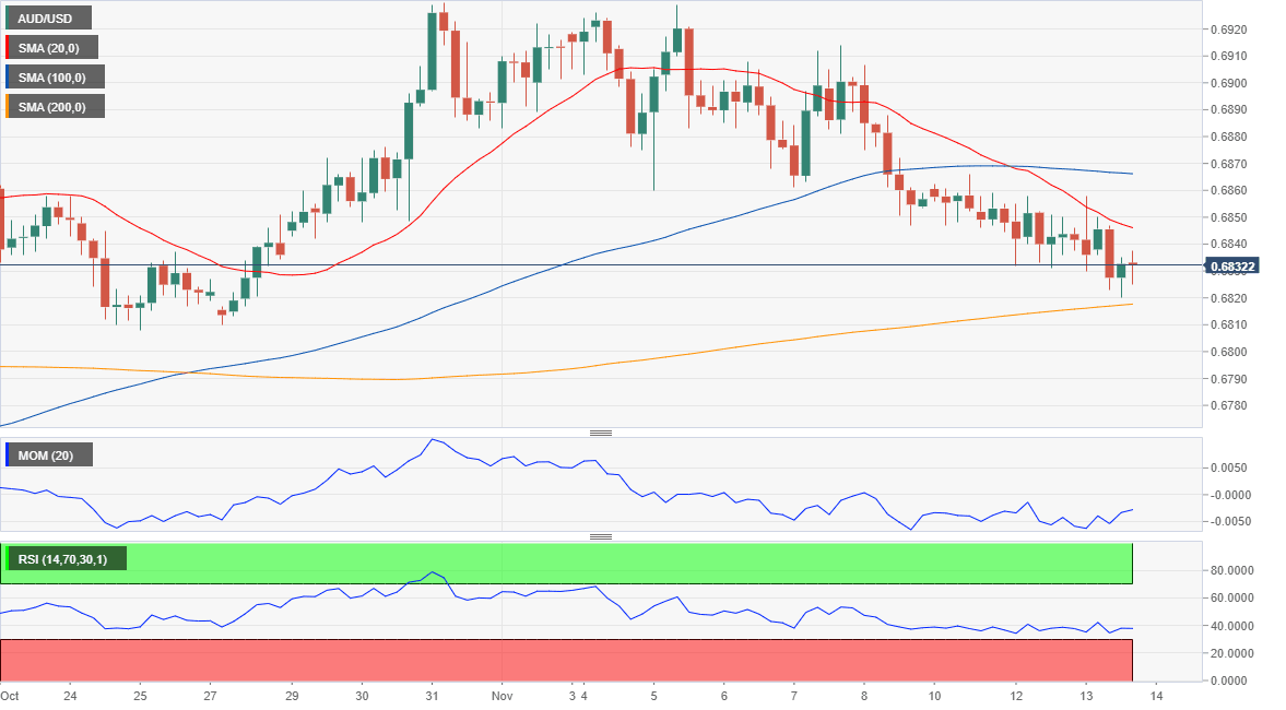 - AUD/USD technically bearish, break below 0.6800 opening doors for a steeper decline.