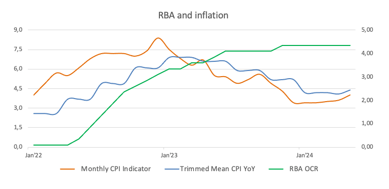 Regarding monetary policy, the Reserve Bank of Australia (RBA), like the Federal Reserve, has been among the last major central banks to change its stance. In its latest meeting, the RBA met expectations by maintaining a hawkish approach, keeping the official cash rate (OCR) at 4.35%, and signalling flexibility for future decisions.