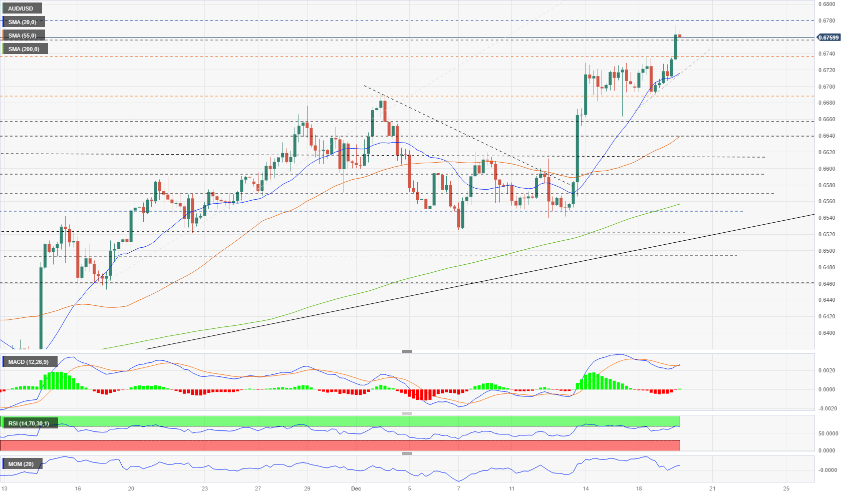 AUD/USD Forecast: Potential for more gains, strong resistance around 0.6800