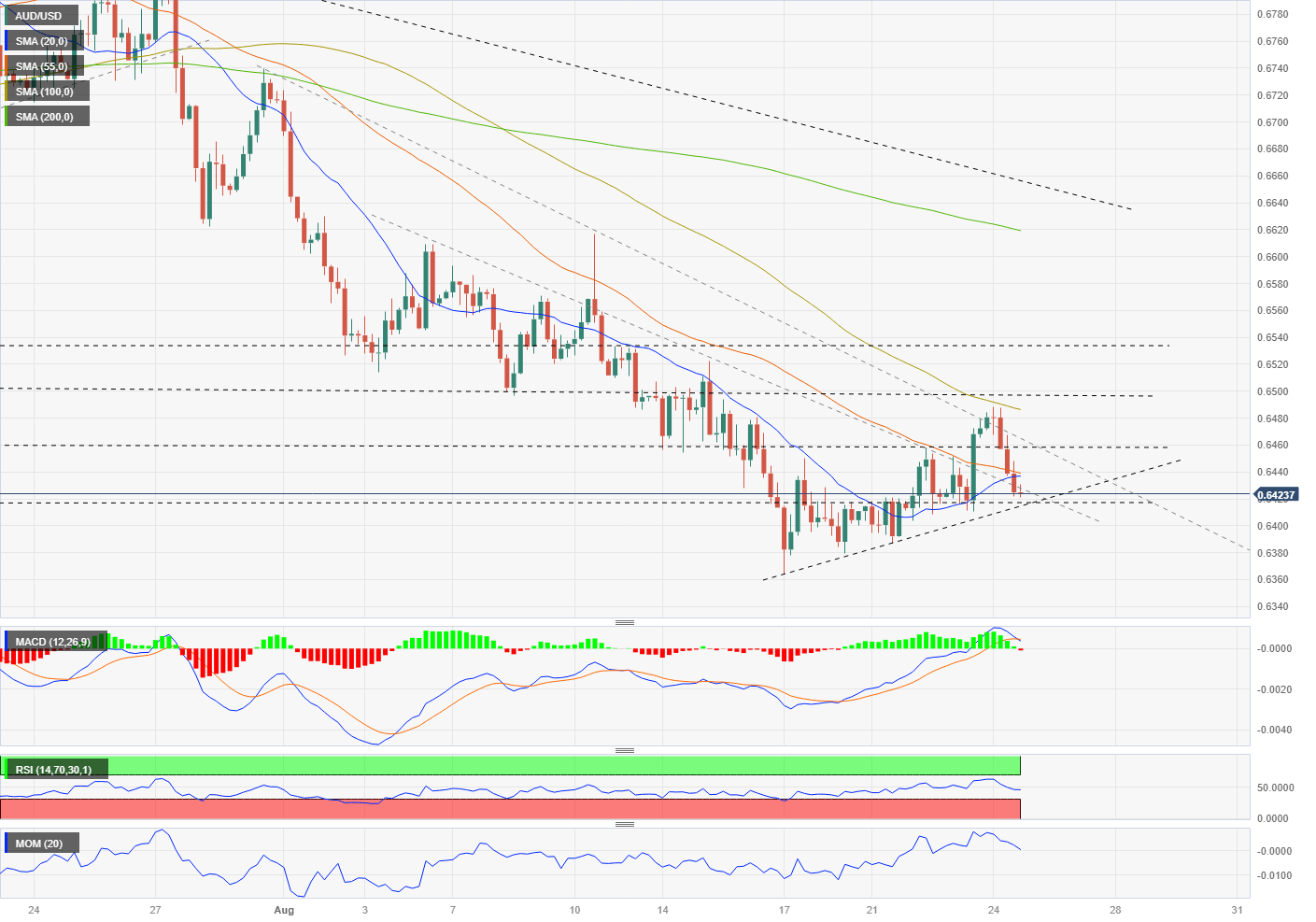 The AUD/USD reversed Wednesday's gains, reflecting that it is not yet ready for a sustained recovery. The US Dollar strengthened across the board as markets remain cautious, awaiting Powell's Friday speech at the Jackson Hole symposium.