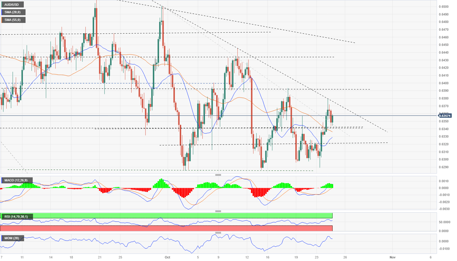 - The AUD/USD trims gains due to Dollar strength, still with scope for more upside while above 0.6340.