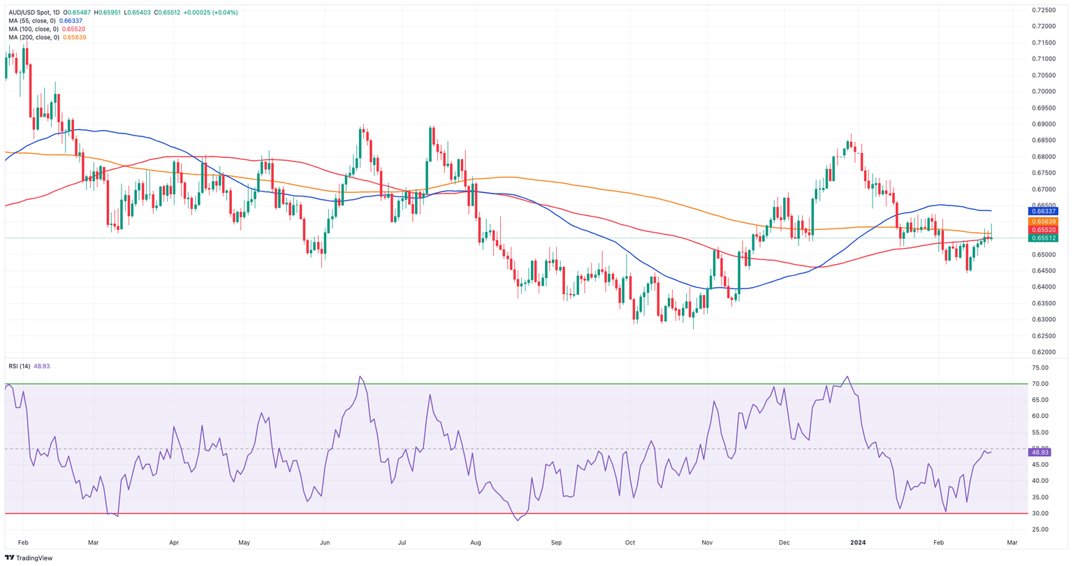 Once AUD/USD clears the weekly peak of 0.6595 (February 22), it could then retest the temporary 55-day SMA at 0.6628, which coincides with the late-January highs (January 30). A break above this range may take the pair to the December 2023 top of 0.6871 (December 28), followed by the July 2023 peak of 0.6894 (July 14) and the June 2023 high of 0.6899 (June 16), all before the important 0.7000 milestone.