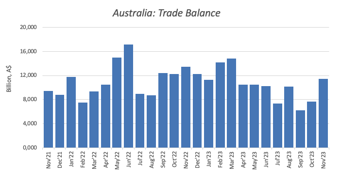 On the latter, the trade surplus in Australia widened to A$11.437B in November (from A$7.660B), with Exports up 1.7% vs. the previous month and Imports shrinking by 7.9% on a monthly basis.