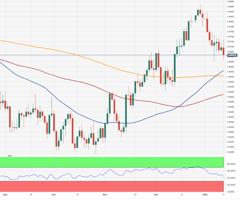 The continuation of selling pressure might push the AUD/USD to the 2024 low of 0.6640 (January 5) before hitting the 200-day SMA at 0.6581. The December 2023 low of 0.6525 comes next seconded by the transitory 100-day SMA of 0.6504. If bulls regain the upper hand, the focus will transfer to the December 2023 peak of 0.6871 (December 28), which will appear before the July 2023 high of 0.6894 (July 14) and the June top of 0.6899 (June 16). If the pair breaks out of this range, the psychological level of 0.7000 will be the next to be monitored.