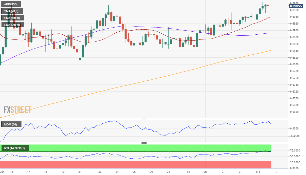 - AUD/USD neutral-to-bullish in the short-term and heading towards 0.7063.