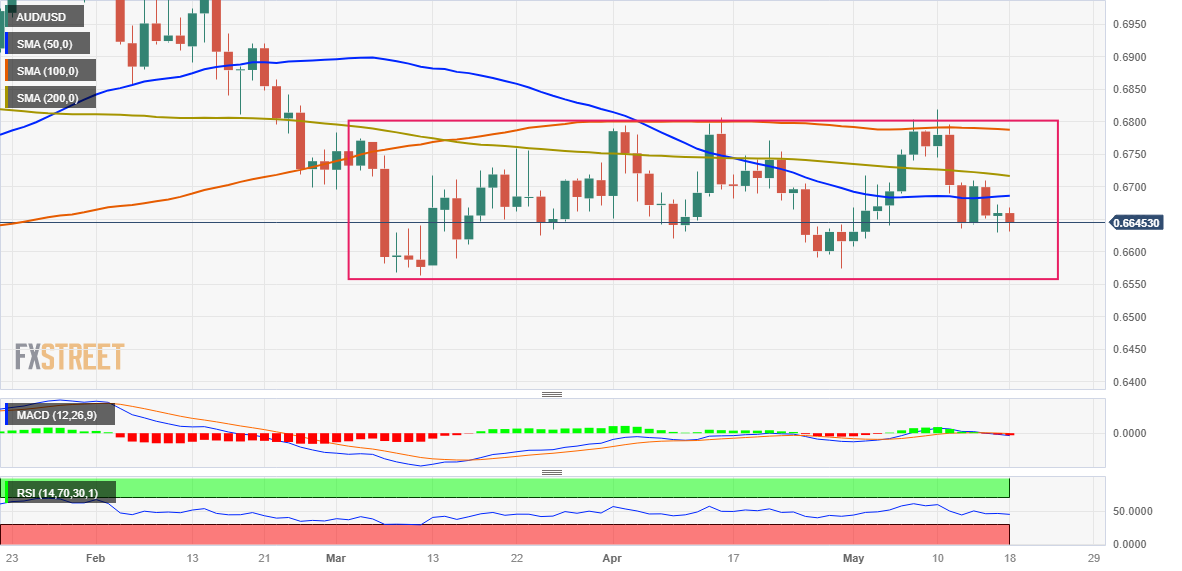 From a technical perspective, last week's failure near the 100-day Simple Moving Average (SMA) and the subsequent downfall favours bearish traders. Adding to this, the AUD/USD pair now has found acceptance below the 50-day SMA, which, along with negative oscillators on the daily chart, support prospects for a further near-term depreciating move. Some follow-through selling below the 0.6630-0.6625 region will reaffirm the bearish outlook and drag spot prices below the 0.6600 mark, towards the YTD low, around the 0.6570-0.6565 region touched in March. The downward trajectory could get extended towards challenging the 0.6500 psychological mark.