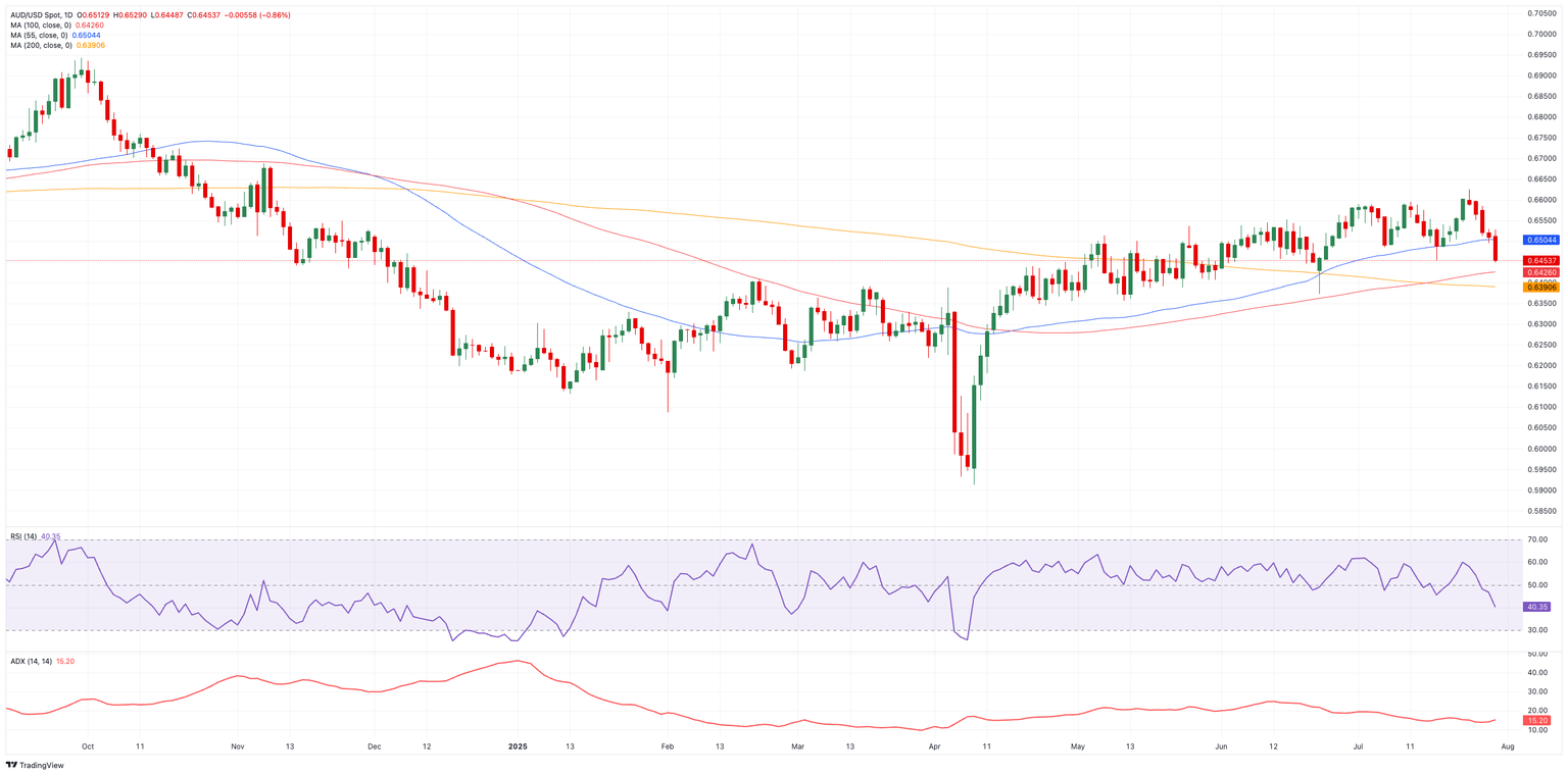 Immediate resistance for AUD/USD is eyed at 0.6625, the 2025 peak reached on July 24, with the November 2024 high of 0.6687 and the psychological 0.7000 mark looming just above.